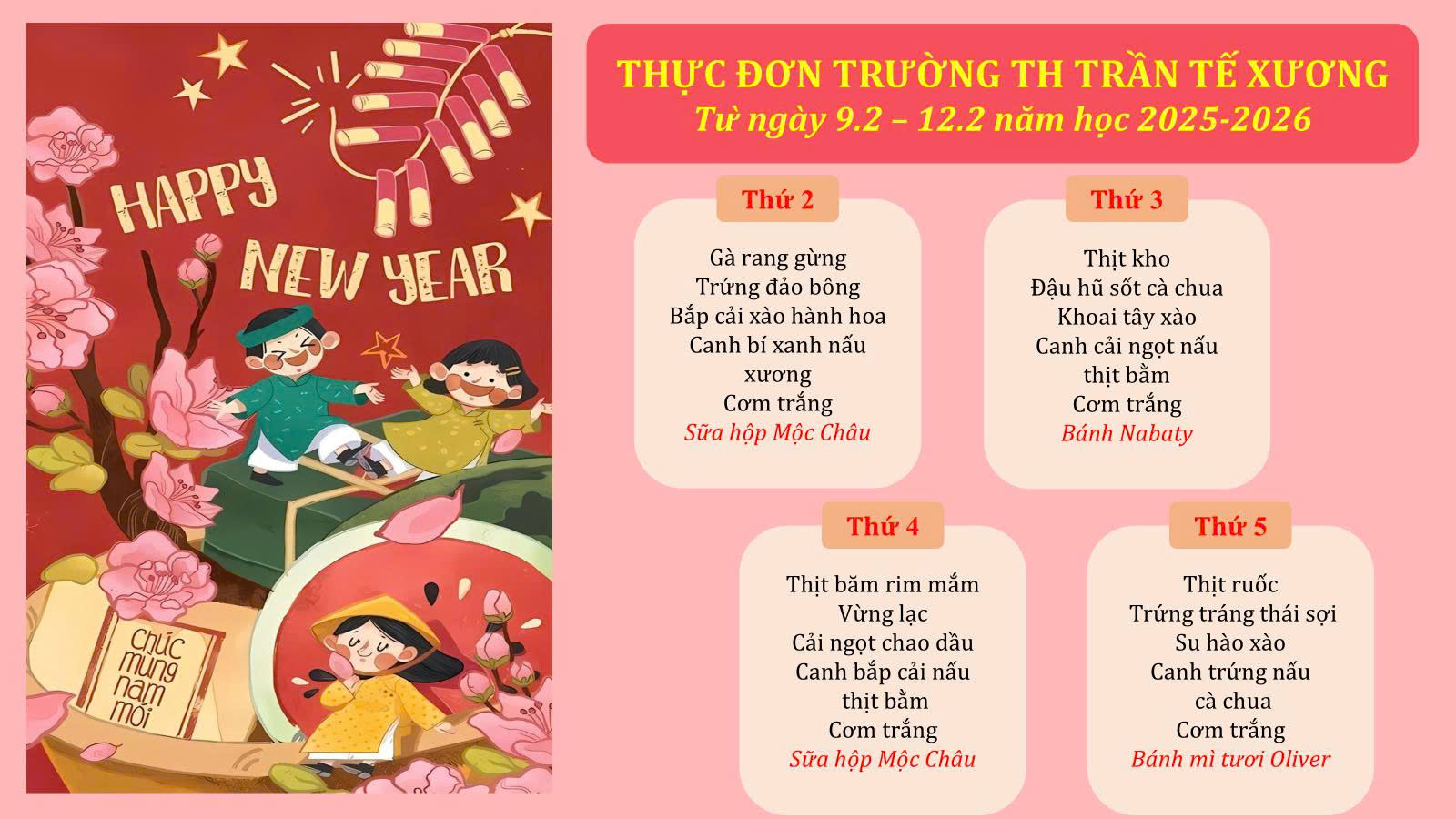 Thực đơn trường TH Trần Tế Xương từ ngày 09/02/2026-12/02/2026