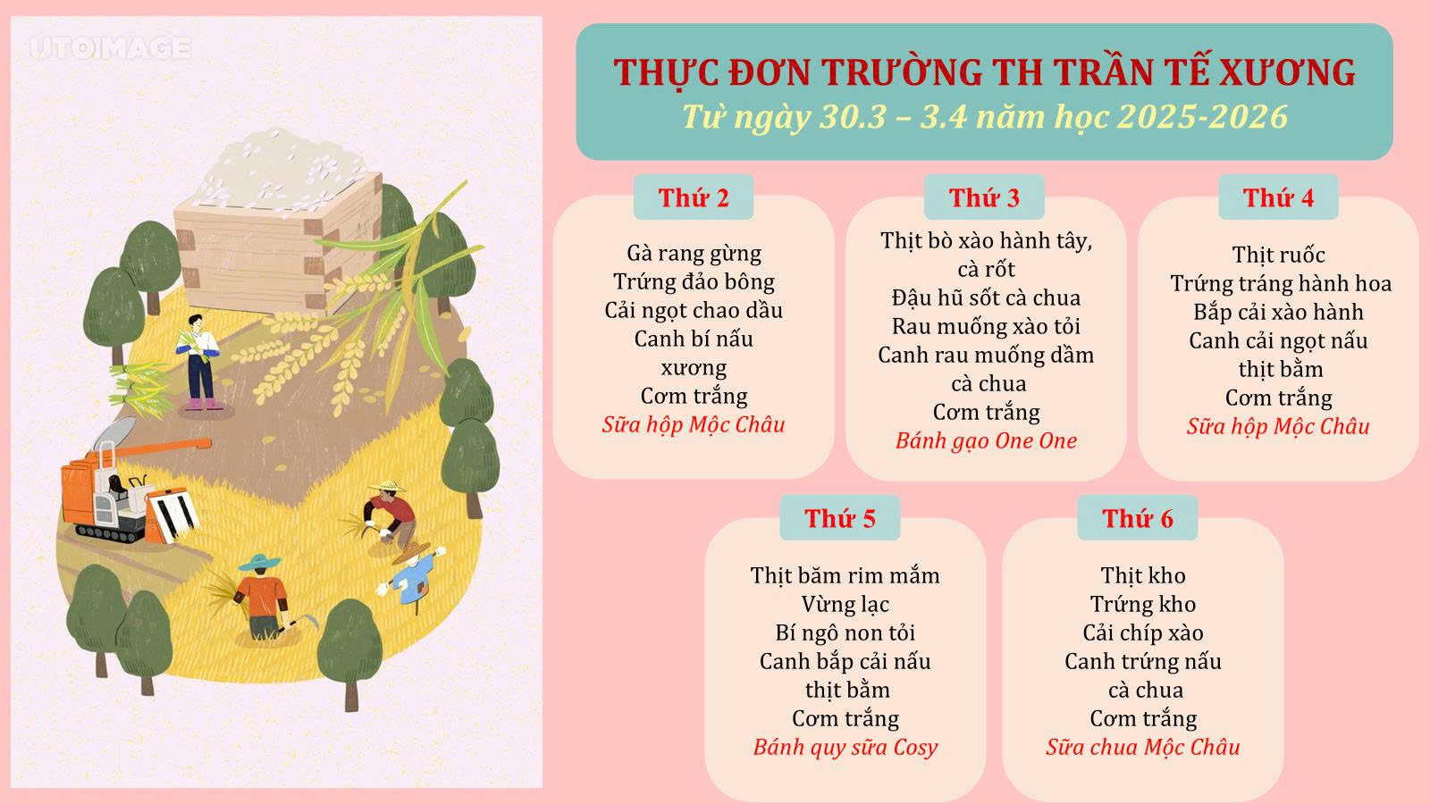 Thực đơn trường TH Trần Tế Xương từ ngày 30/03/2026-03/04/2026