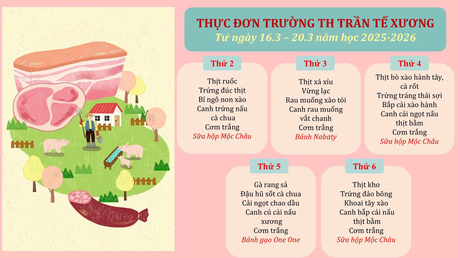 Thực đơn trường TH Trần Tế Xương từ ngày16/03/2026-20/03/2026